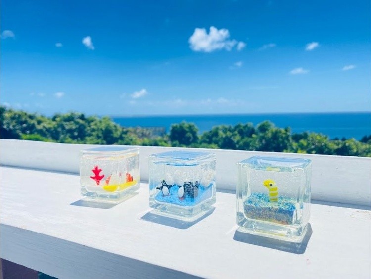 【沖縄・美ら海水族館近く】ジェルサンドアート作り体験 色砂やガラスのパーツでオリジナル作品を作ろう!