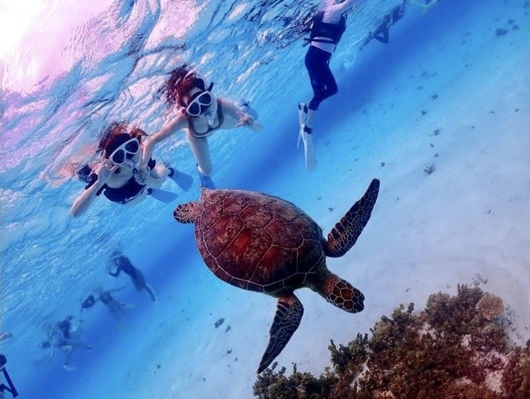 【大人気の八重干瀬(やびじ)】地元船長と行く!国内最大級のサンゴ礁でウミガメと泳ぐツアー(ドローン撮影込み)