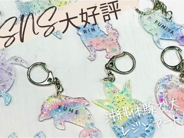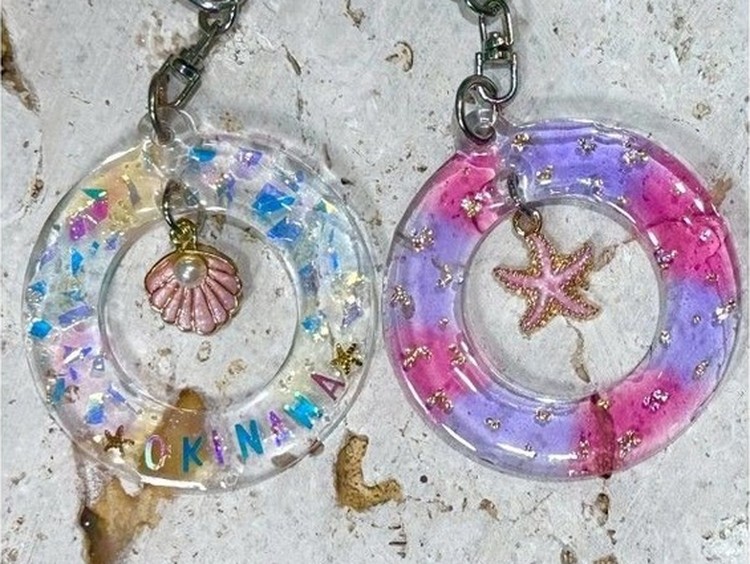 沖縄を感じる店内で楽しく体験☆オリジナルレジンキーホルダー☆